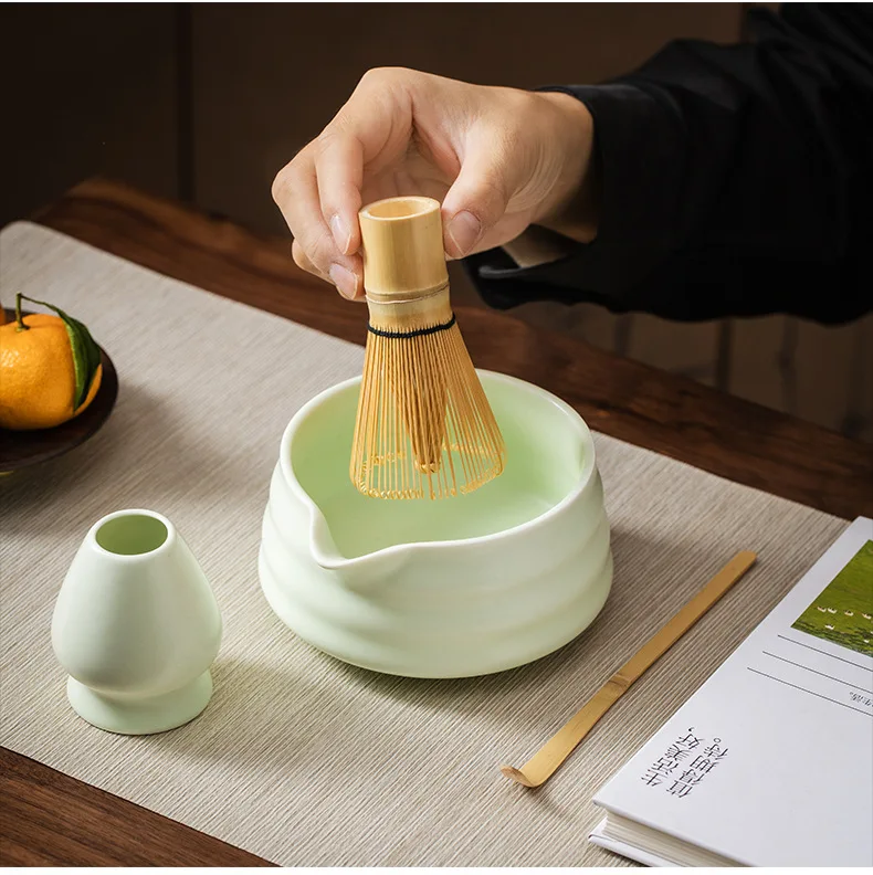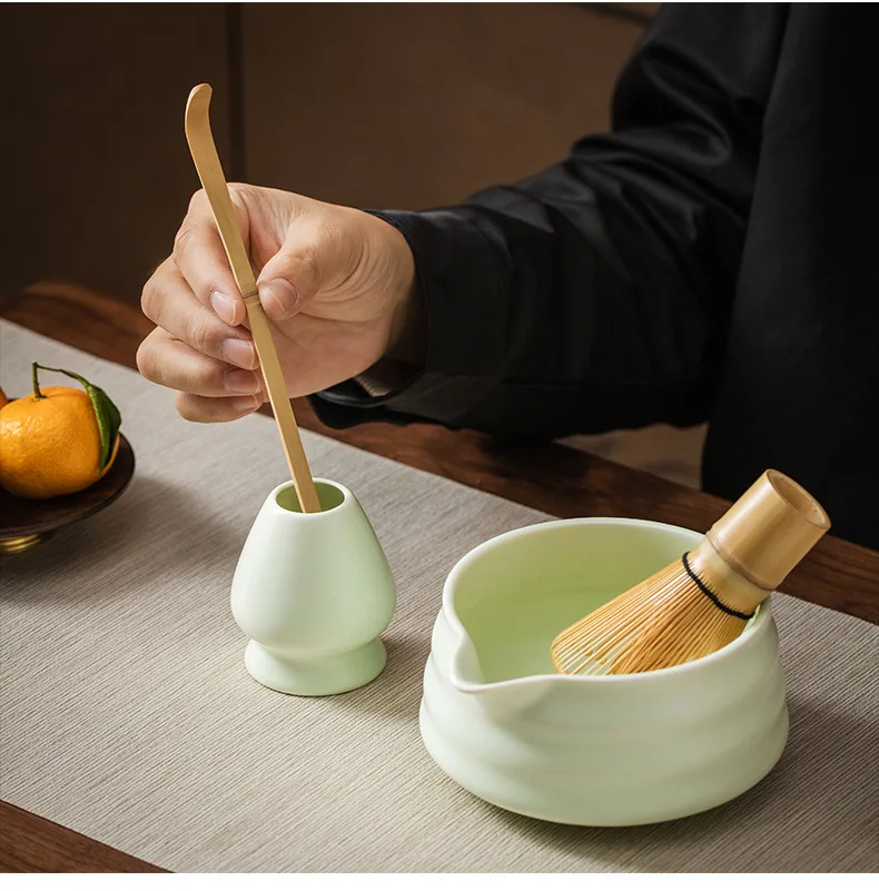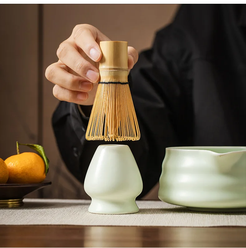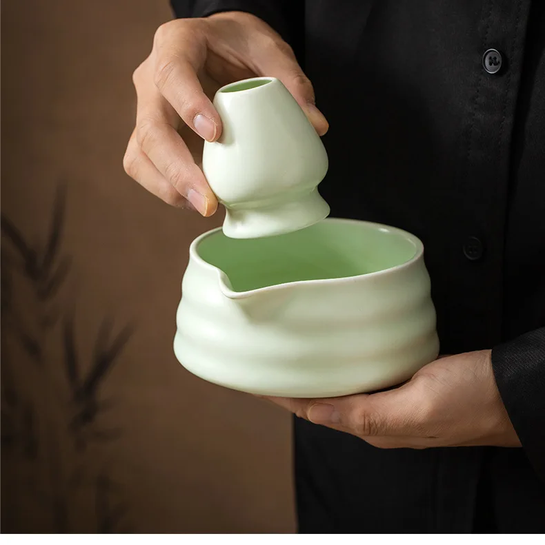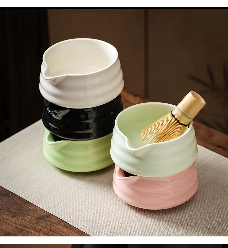 Japanese Matcha Ceramic Bowl – With Pouring Spout & Whisk Holder for Tea Lovers